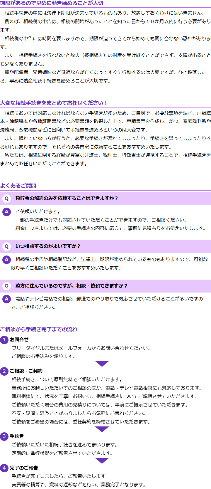 相続手続きは、弁護士、税理士などの専門家に依頼することで、手続き上の負担を軽減し、スムーズに手続きを進めることができますので、相続手続きが面倒だと感じている方は、専門家に任せることをおすすめします。